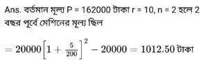 - একটি মেশিনের মূল্য প্রতি বছর 10% করে হ্রাস পায়। বর্তমান মূল্য 162000 টাকা হলে 2 বছর আগে মূল্য কত ছিল?