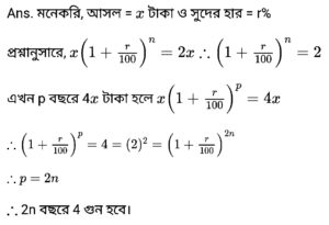 - বার্ষিক নিদিষ্ট শতকরা চক্রবৃদ্ধি হার সুদে কিছু টাকা n বছরে দ্বিগুণ হলে, কত বছরে 4 গুণ হবে তা লিখি ।